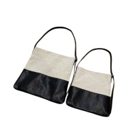 Sıcak satmak keten ekleme pu deri büyük kapasiteli tote çanta keten tote alışveriş çantası